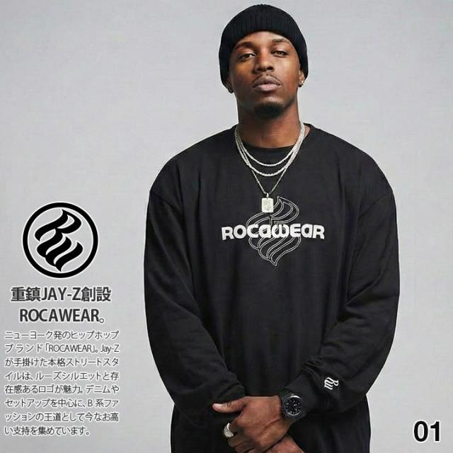 ROCAWEAR 公式 ロンT JAY-Z メンズ レディース 春秋冬用 黒 白 大きいサイズ ロカウェア Tシャツ 長袖 おしゃれ シンプル ワンポイント 大人 刺繍 ブランドロゴ カットソー トップス ストリート ビッグシルエット b系 ヒップホップ ストリート系 服 2026春夏 新作 RC001A01