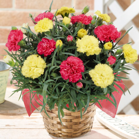 ●カーネーション2色ミックス「すてき」5号、バスケット、ラッピング、母の日カード、手引書