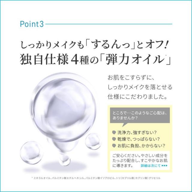 ○メイク汚れが浮き上がったら、丁寧にぬるま湯ですすいでください。 ○保湿成分が豊富なため、ぬめりを感じる場合があります。W洗顔不要の商品になりますが、気になる方は洗顔をして下さい。また少量の水を顔に塗布した後、当該商品をご使用頂くとぬめりは軽減されます。 |