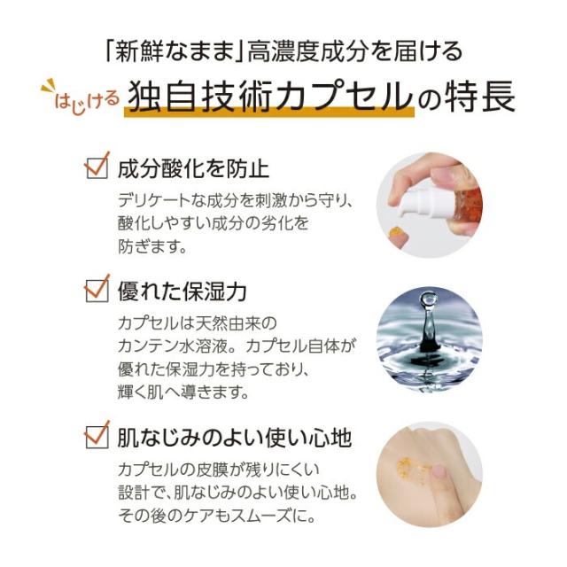 | 全成分 | 水、グリセリン、BG、ペンチレングリコール、3-グリセリルアスコルビン酸、アスタキサンチン、ナイアシンアミド、フラーレン、パルミチン酸アスコルビルリン酸3Na、加水分解コラーゲン、ヒアルロン酸Na、セラミドNP、セラミドNG、セラミドAP、グリチルリチン酸2K、スクワラン、ツボクサエキス、酵母エキス、トコフェロール、トリ(カプリル酸/カプリン酸)グリセリル、ヒドロキシプロピルデンプンリン酸、エチルヘキシルグリセリン、カプリリルグリコール、1,2-ヘキサンジオール、カンテン、ステアリン酸スクロース、ヒドロキシエチルセルロース、ヒドロキシアセトフェノン、PCA-Na、PVP、水酸化Na、ペンテト酸5Na、PPG-6デシルテトラデセス-30、(アクリレーツ/アクリル酸アルキル(C10-30))クロスポリマー、ポリアクリレートクロスポリマー-6、フェノキシエタノール |