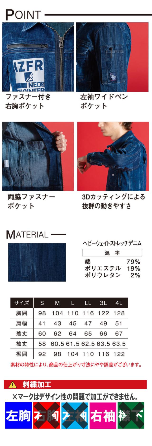 [2/18入荷先行予約]数量限定 アイズフロンティア IZ FRONTIER 3Dストレッチデニムジャケット 7710 2026年春夏新作