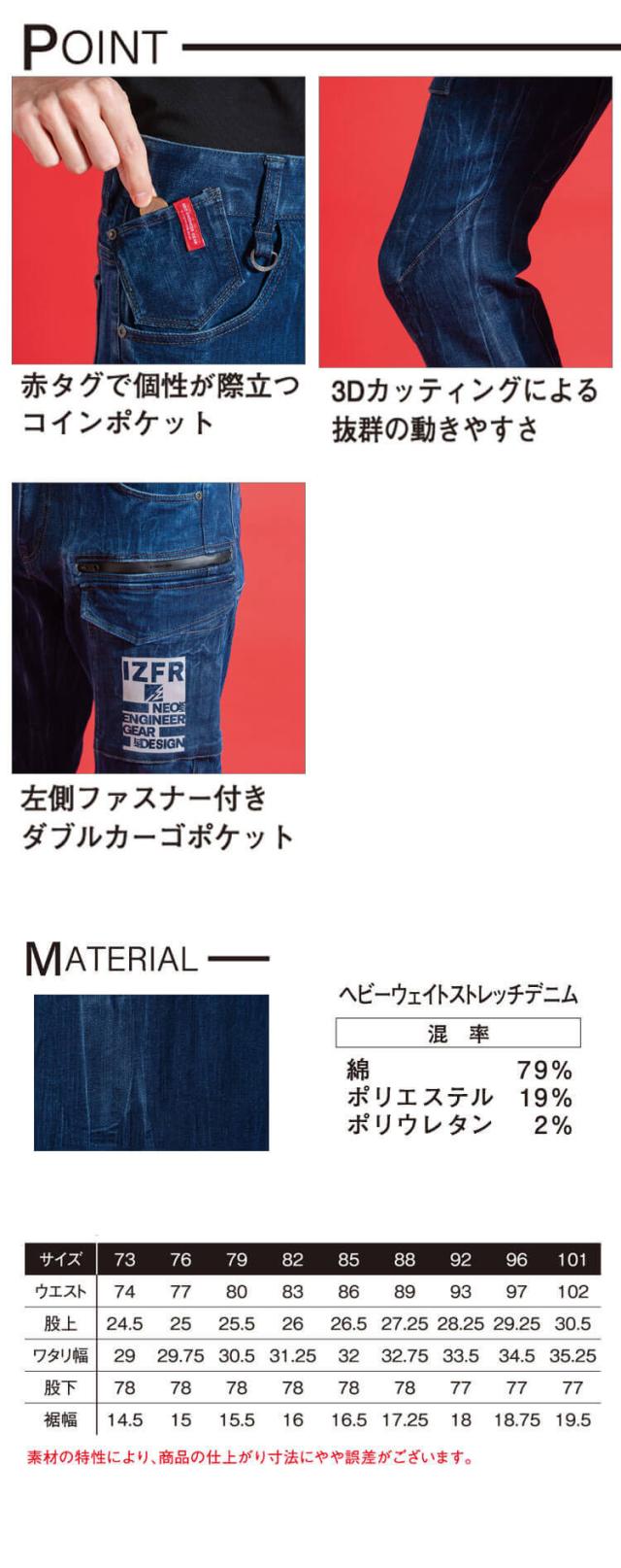 [2/18入荷先行予約]数量限定 アイズフロンティア IZ FRONTIER 3Dストレッチデニムカーゴパンツ 7712 2026年春夏新作