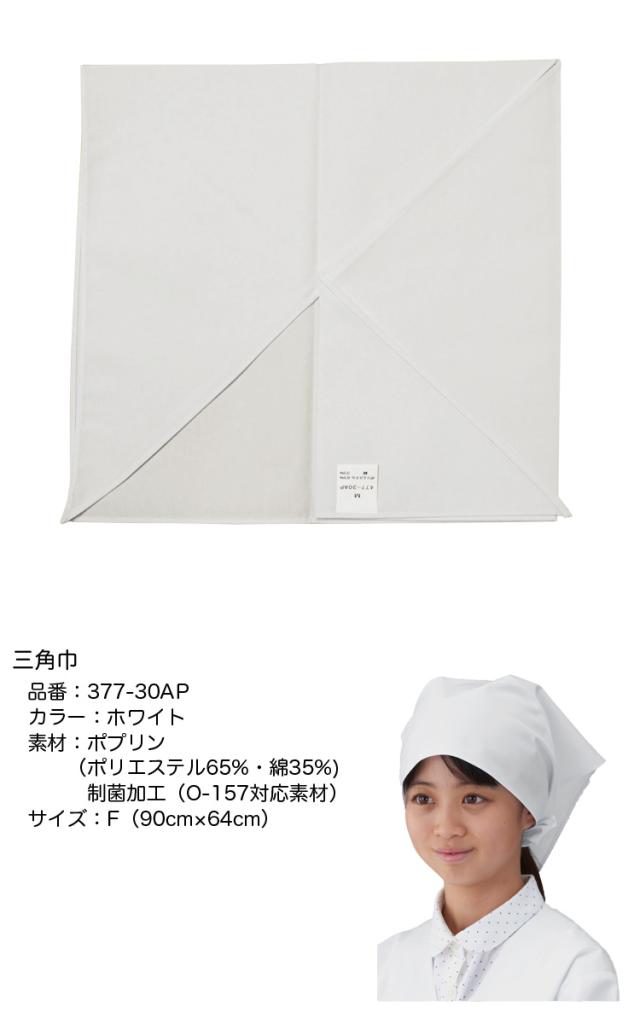 【男女兼用】アプロンアパレル 377-30ap 給食帽 三角巾 白色 給食着 ホワイト