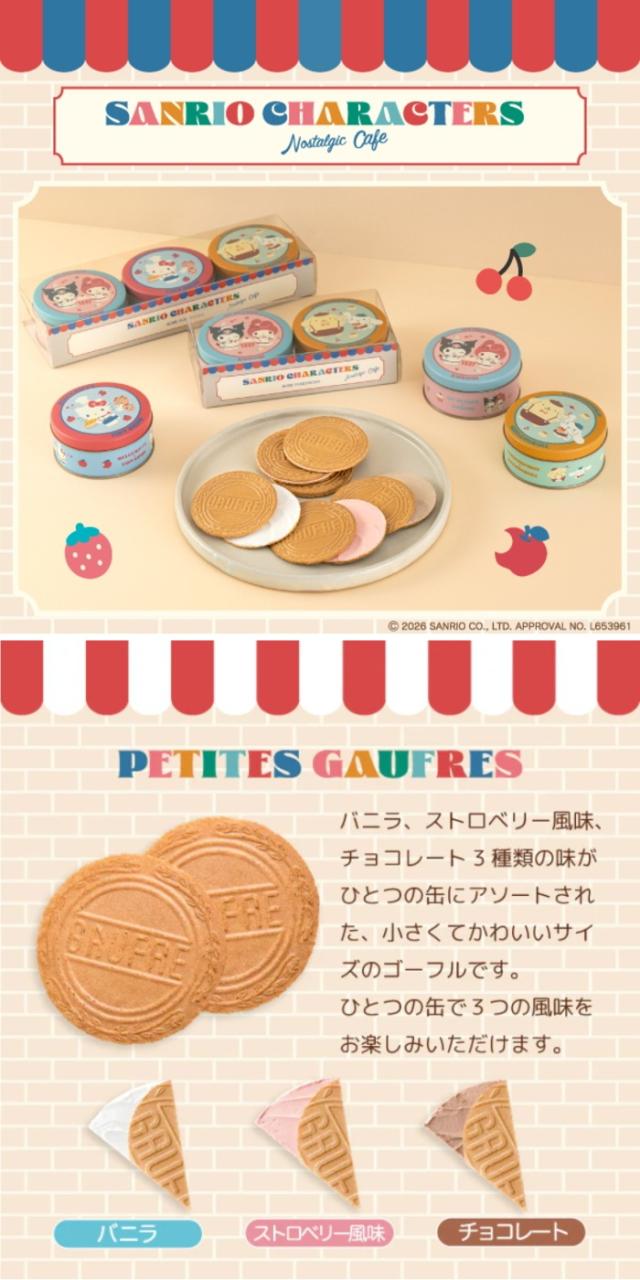少し懐かしさを感じるノスタルジックなカフェをイメージした、サンリオキャラクターズの神戸風月堂オリジナルデザインミニゴーフル。