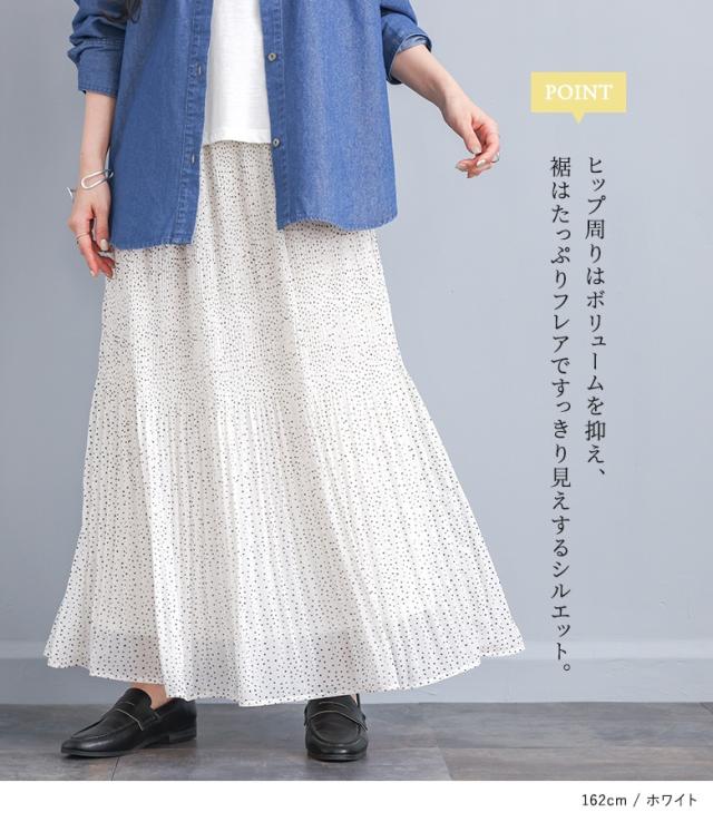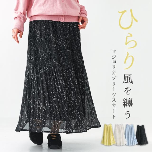 プリーツスカート レディース ボトムス ロングスカート マキシスカート マジョリカプリーツ フレア 春 夏 秋 オシャレウォーカー 【TP】 スカート フレアスカート ロング丈 マキシ丈 フルレングス 10分丈 プリーツ ウエストゴム ドット柄 水玉柄 配色 無地 おうちで洗える 裏地付き 薄手 カジュアル レトロ クラシカル シンプル ナチュラル キレカジ フェミニン ガーリー 可愛い系 大人女子 大人可愛い お洒落可愛い 大人カジュアル オフィスカジュアル 上品 きれいめ ベーシック ニュアンス ラフ Sサイズ Mサイズ Lサイズ LLサイズ 3Lサイズ XLサイズ フリーサイズ ぽっちゃり 体型カバー 大きいサイズ プラスサイズ 10代 20代 30代 40代 50代 60代 低身長 高身長 女子会 オフィス 通勤 通学 お買い物 お出掛け 旅行 おしゃれ お洒落 トレンド 流行 osharewalker ホワイト 白 イエロー 黄色 水色 サックス ブラック 黒[ID]11bp02i[マジョリカプリーツスカート]