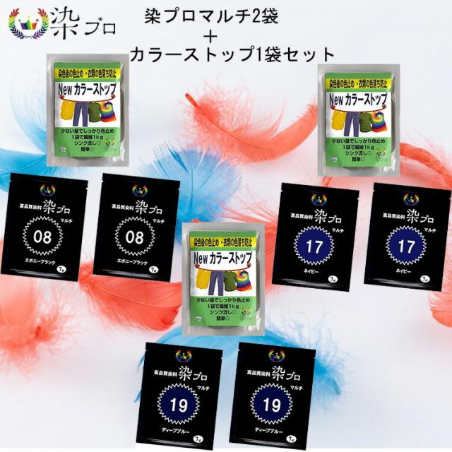 染料 染プロ マルチ 7gパック 2袋+カラーストップ1袋 3点セット 染プロ カラーストップ セット 染色 綿 麻 レーヨン 天然繊維 毛 絹 化学繊維 帽子 色あせ マルチ染料 簡単 安全 タイダイ染め スニーカー染め 染め粉 ゆうパケットなら送料無料