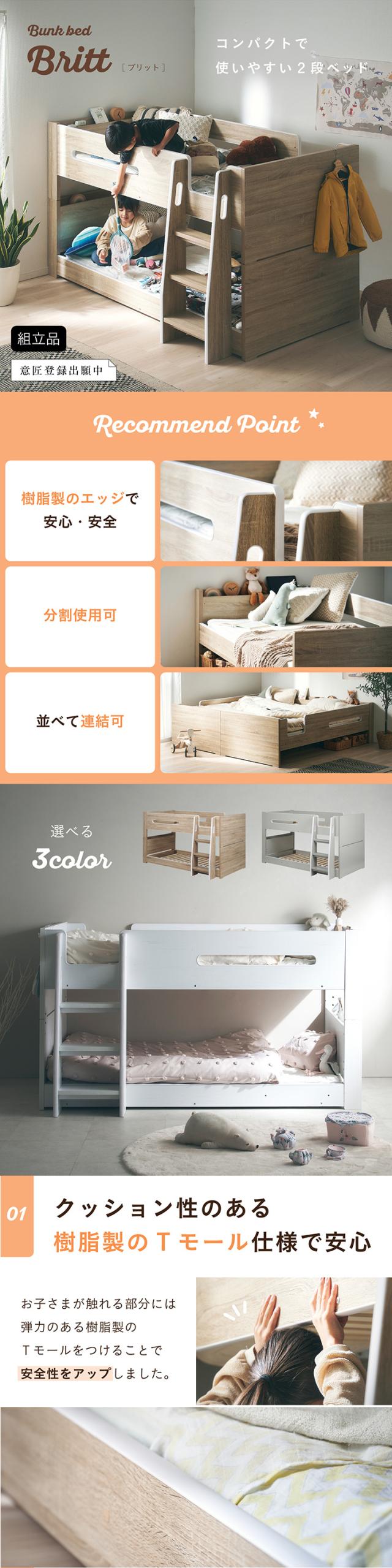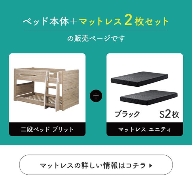 二段ベッド 大人用 マットレス付き 子供 分離 シングルベッド すのこ マットレス シングル 黒 ブラック 2枚セット Britt(ブリット)+Unity(ユニティ) 3色対応 2段ベッド 宮付き コンセント付き おしゃれ