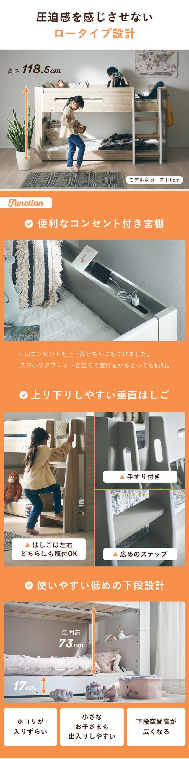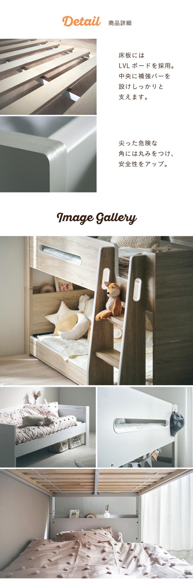 二段ベッド 大人用 マットレス付き 子供 分離 シングルベッド すのこ マットレス シングル 黒 ブラック 2枚セット Britt(ブリット)+Unity(ユニティ) 3色対応 2段ベッド 宮付き コンセント付き おしゃれ