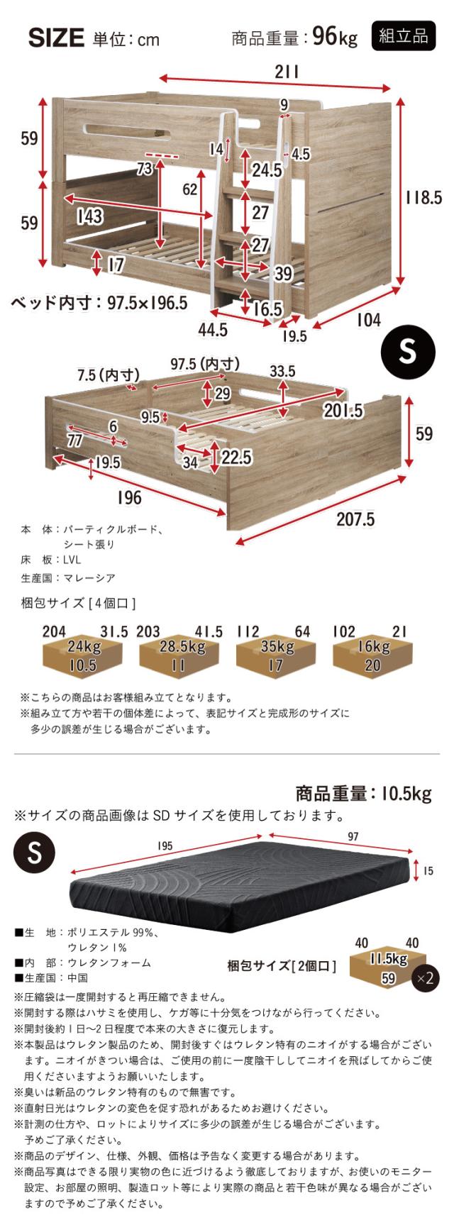 ベッド本体:W211 x D104 x H118.5cm