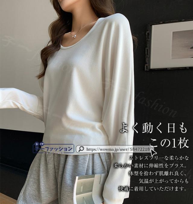 <1点2,090円!クーポン利用で>tシャツ カットソー 長袖 ドルマンスリーブ レディース 大きいサイズ ゆったり 二の腕隠し 体型カバー 無地 トップス カジュアル かわいい おしゃれ 重ね着 レイヤード インナー カットソー