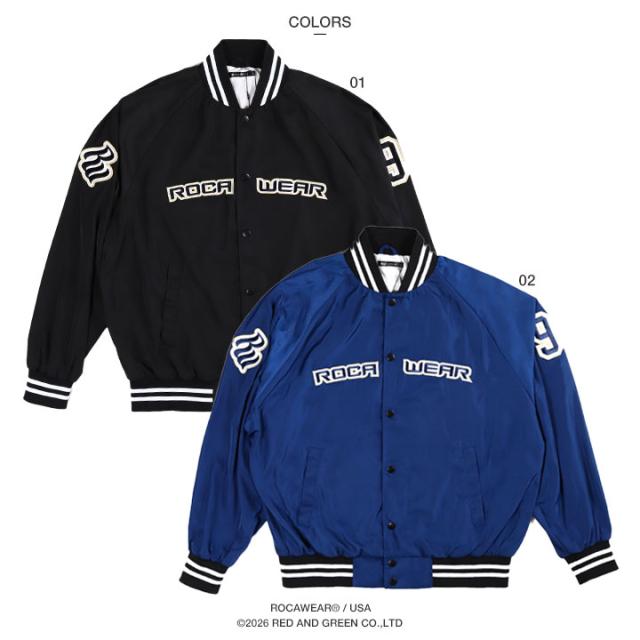 ROCAWEAR 公式 アウター 長袖 スタジャン ロカウェア ブルゾン ヴァーシティジャケット ナイロンスタジャン スタジアムジャンパー メンズ 春秋冬用 黒 紺 大きいサイズ ビッグシルエット b系 ヒップホップ ファッション ストリート系 ブランド 服 2026春夏 新作 RC001A06
