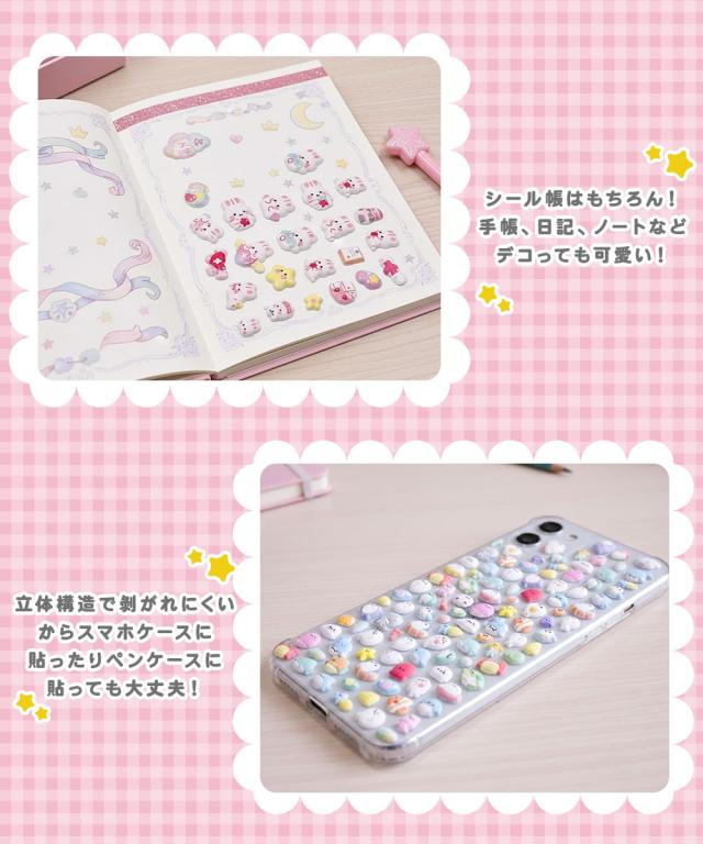 スマホケース、パソコン、手帳、日記、ノート、スクラップブック、文房具など、お好きなアイテムに貼ってオリジナルデコが楽しめます。