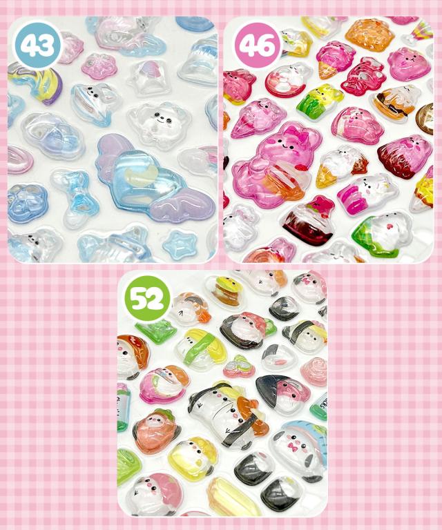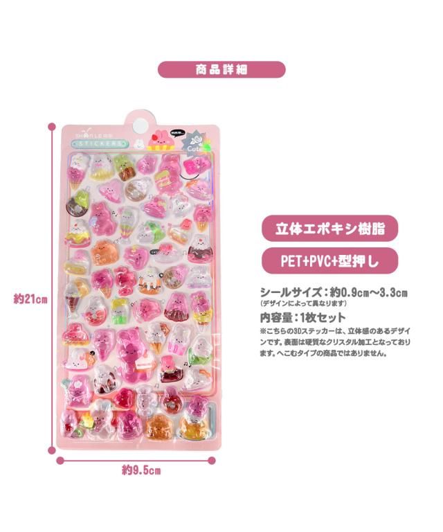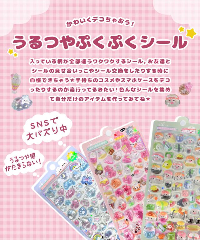 ぷっくりシール クリスタル ぷくぷくシール つやつや キラキラ シール セット 立体シール 3dシール デコシール キャラクター ウサギ 食べ物 リボン シマエナガ お寿司 動物 アニマル かわいい 手帳 スマホケース 鏡デコ