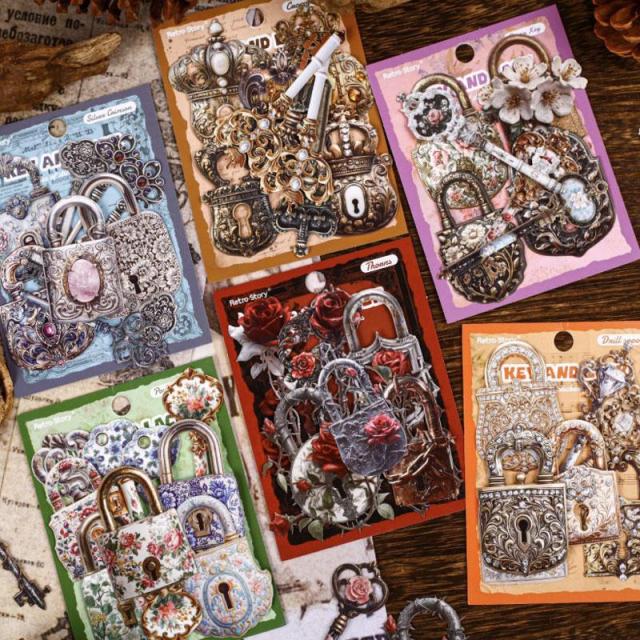 ST824 カギ 鍵 南京錠 ヴィンテージキー 装飾 コラージュ素材 コラージュ シール ステッカー 紙もの 手帳 日記 海外 紙モノ 紙物