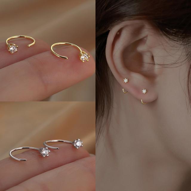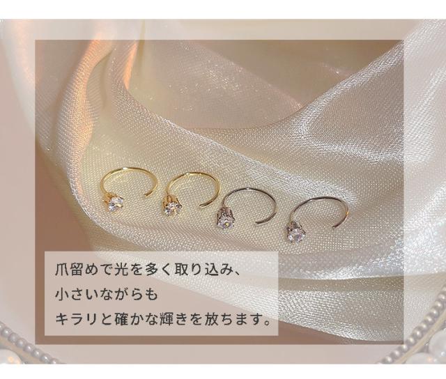 ピアス レディース フープ C型 オープン 一粒 キュービックジルコニア フープピアス 小さめ 12mm 18kコーティング ゴールド プラチナ 金属アレルギー対応 シンプル 上品 華奢 大人可愛い おしゃれ オフィス 通勤 通学 韓国 ファッション プレゼント ギフト 送料無料