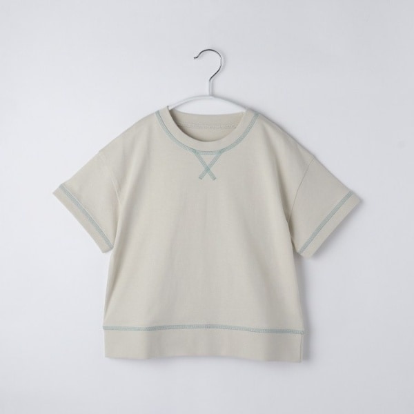 配色ステッチがポイントの、スウェット見えの天竺Tシャツ。