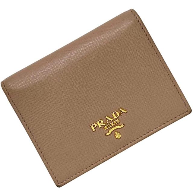 プラダ 二つ折り 財布 ベージュ 1MV204 折り財布 サフィアーノ レザー 中古 62 B PRADA ホック ロゴ 金具 コンパクト ミニ メンズ レディース 男女兼用 シンプル ゴールド金具 小銭入れ有 シンプル 折り財布