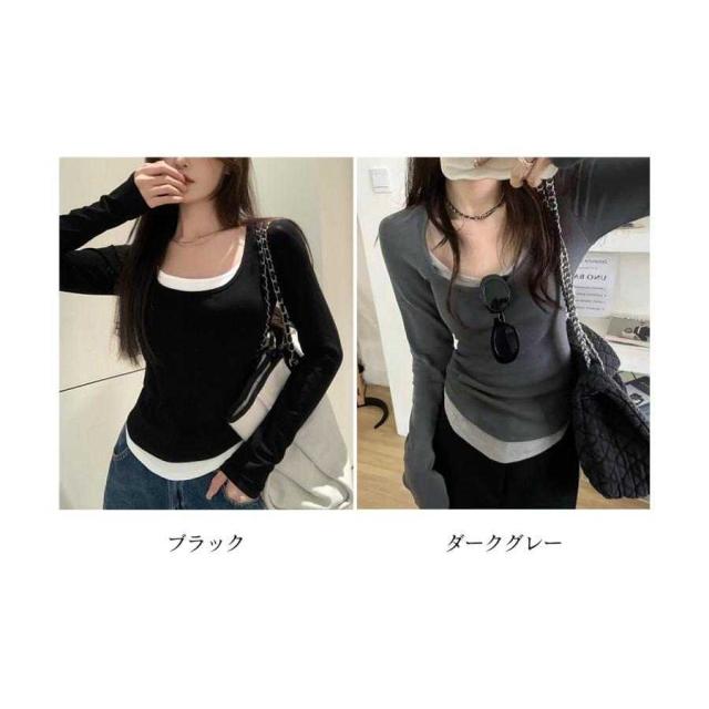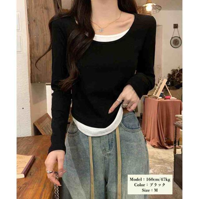 長袖Tシャツ フェイクレイヤード 着やせ