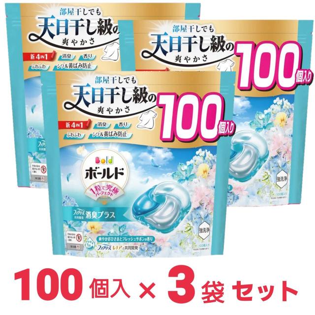 【最安値挑戦中!】 Bold ボールド 洗濯洗剤 ジェルボール 4in1 爽やかおひさまとフレッシュサボンの香り 詰め替え 100個 大容量 x3個