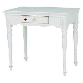 エレガントな彫刻が施された引出しつきアンティーク風テーブル。