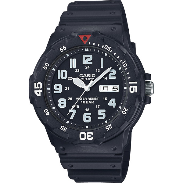 日付表示付きのアナログ時計です。回転ベゼルと10気圧防水を搭載しています。