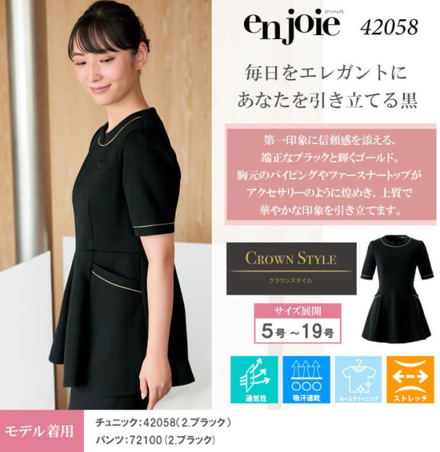 クリニック 施術 受付 美容医療 サロン 制服 ユニフォーム en joie アンジョア チュニック 42058 クラウンスタイル 2026年春夏新作 サイズ5号〜15号
