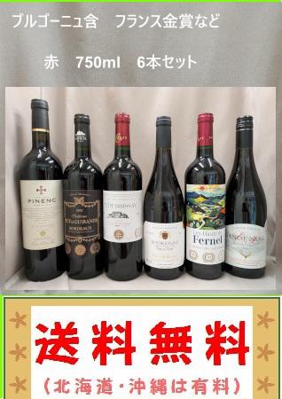 送料無料 ブルゴーニュ入り フランス金賞 赤6本セット (北海道、沖縄、は有料)