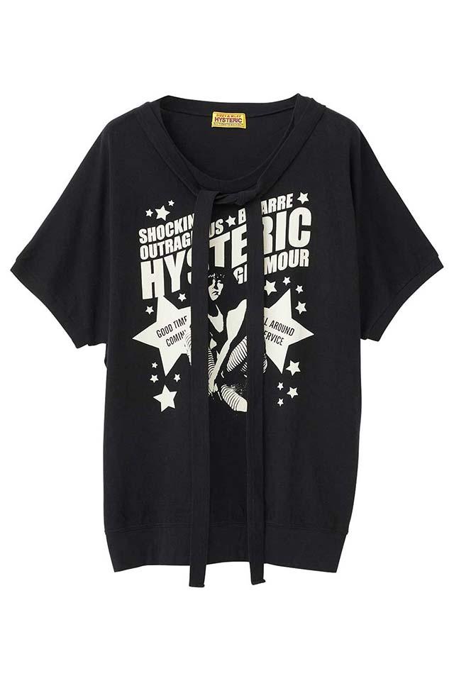★HYSTERIC GLAMOUR ヒステリックグラマーのガーゼ天竺素材を採用し、首元のリボンとフロントのグラフィックプリントデザインが特徴的なリラックスシルエットTシャツ★