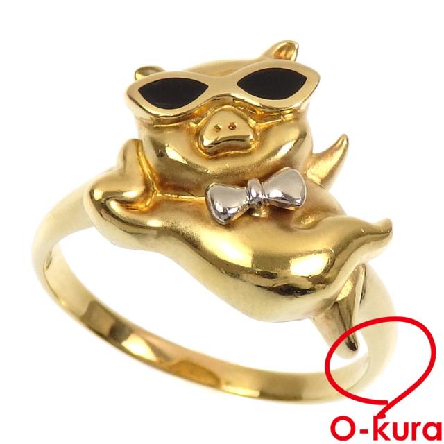 中古 オニキス ピッグモチーフ リング レディース K18YG Pt900 17号 5.2g 18金 イエローゴールド 750 プラチナ 指輪