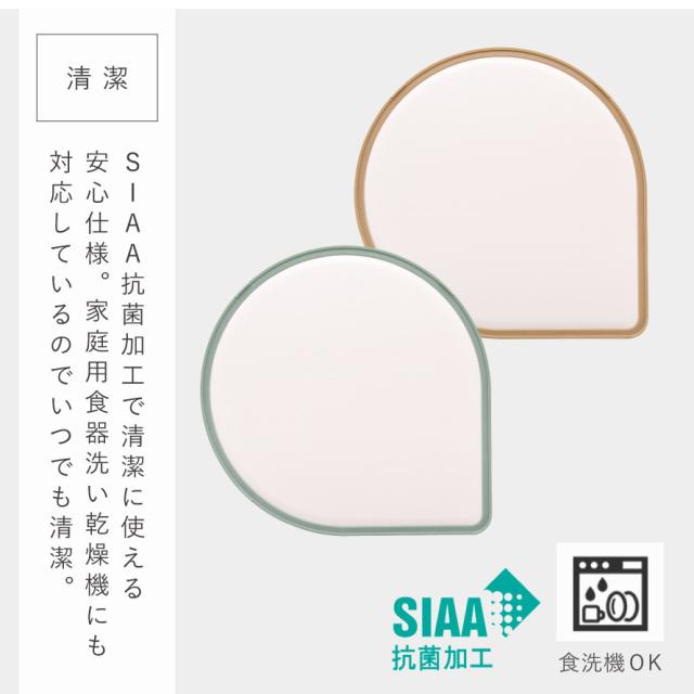 SIAA抗菌加工を施し、清潔に使える安心仕様。フチには滑り止め素材を使用し、安定感のある使い心地です。耐熱温度100度で、家庭用食器洗い乾燥機にも対応しています。