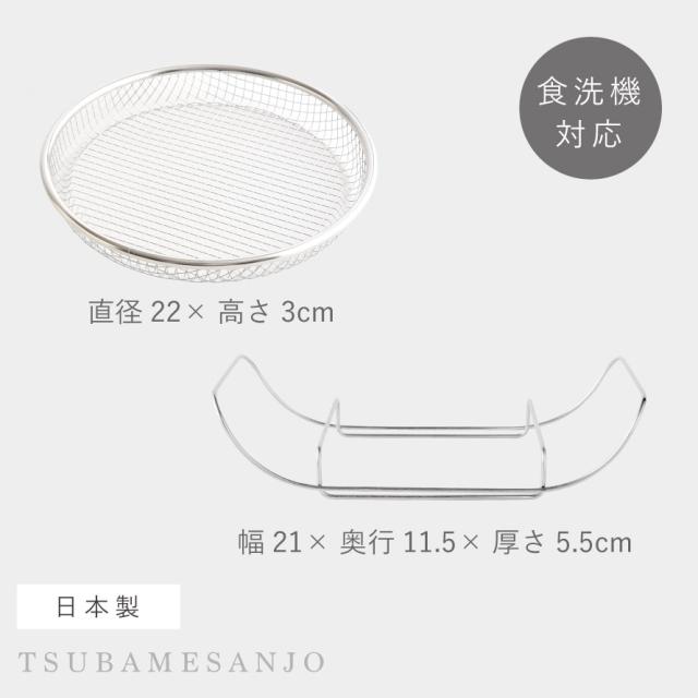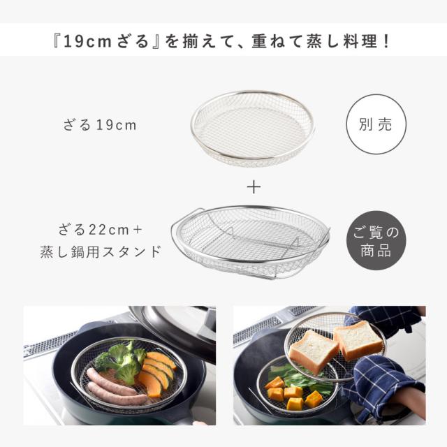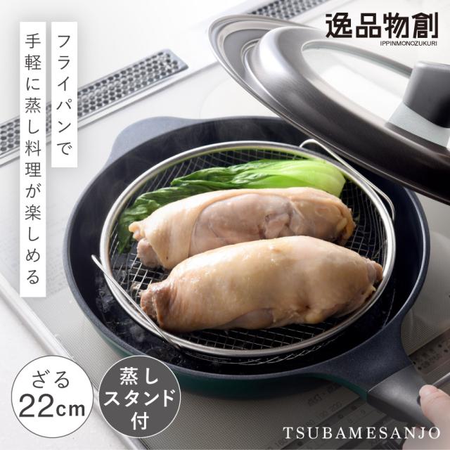 蒸しざる 蒸しかご 22cm 蒸し器 ステンレス 燕三条 日本製 フライパン 脚付き 蒸し網スタンド+お皿のざるセット ザル 浅型 蒸し料理 蒸し鍋用スタンド 時短料理 蒸し野菜