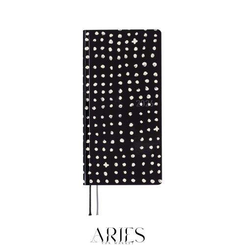 ほぼ日手帳 2026 weeks 4月始まり 日本語 松林誠/dot スリム縦長サイズ、週間レフトタイプのほぼ日手帳。 硬めで軽くしなる程度のハードカバー仕様です。 版画家・アーティスト、松林誠さんのドローイング作品でつくったweeks。 絵の具で黒地にのびのびと描かれた白いドット。潔くシンプルなデザインながら手描きならではのかすれやゆらぎが、やさしさを感じさせるデザインです。ドットのなかにちいさな花がちりばめられているのもポイント。 表紙の特性上、クリアカバーのご使用はおすすめしません。