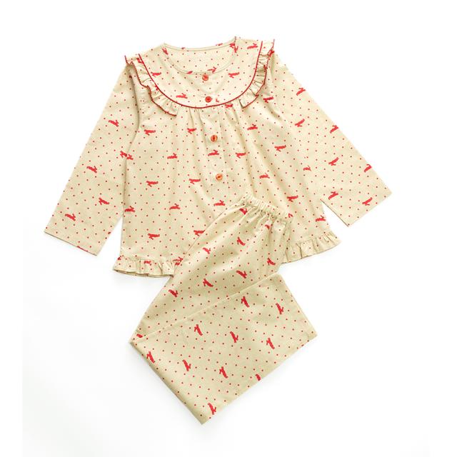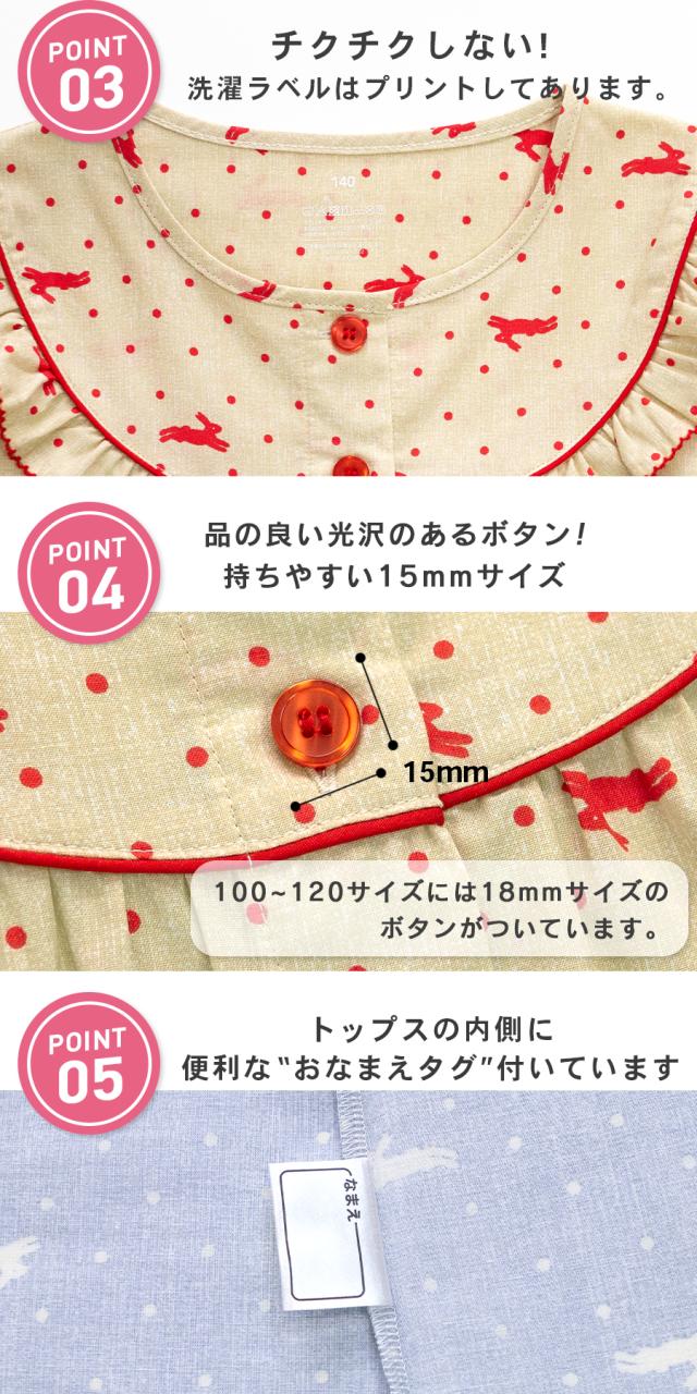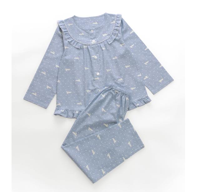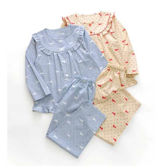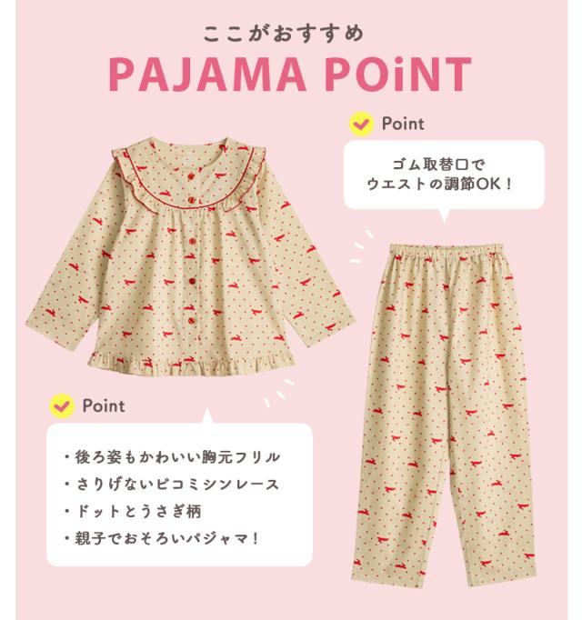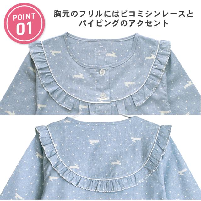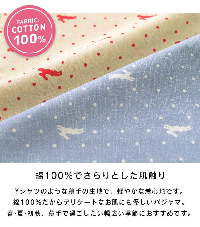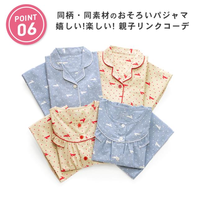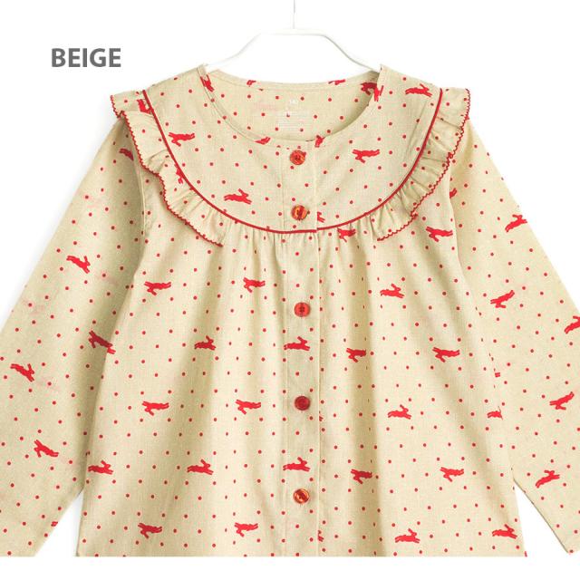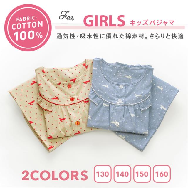 パジャマ キッズ 女の子 綿100% 長袖 春 夏 初秋 うさぎドット柄 前開き ボタン 薄手のシャツ ベージュ ブルー 130 140 150 160 子供 ジュニア ガールズ 家族 おそろい リンクコーデ メール便なら 送料無料 82117
