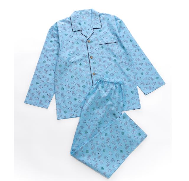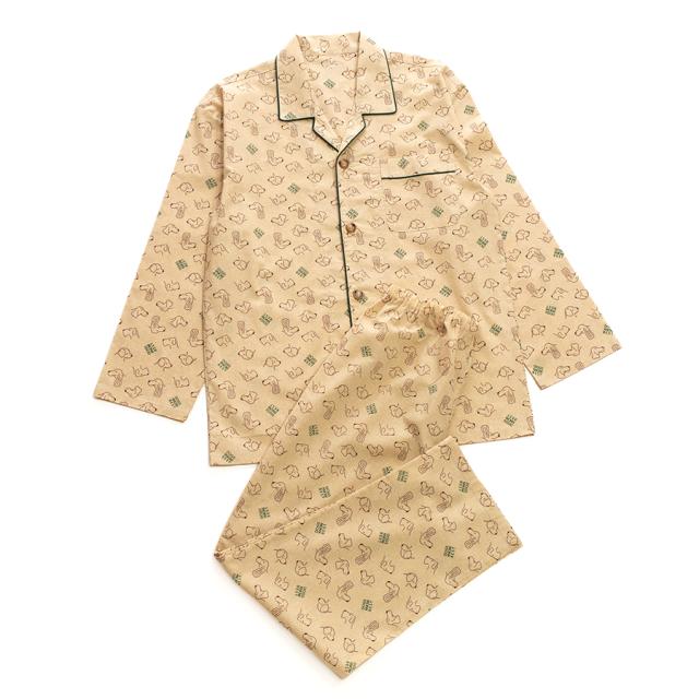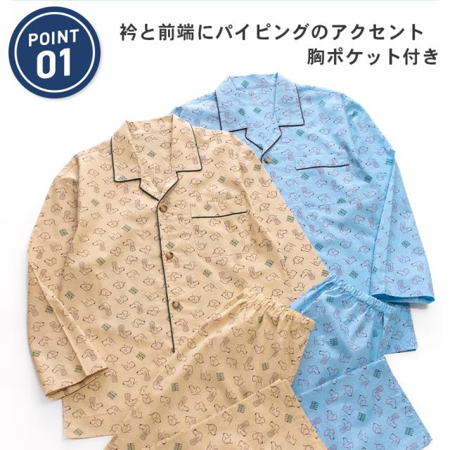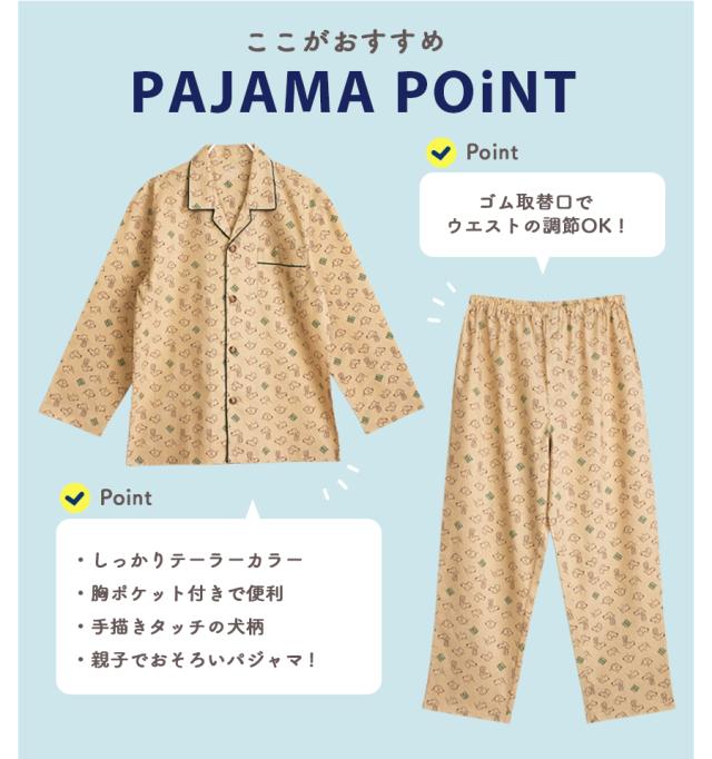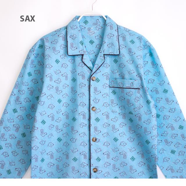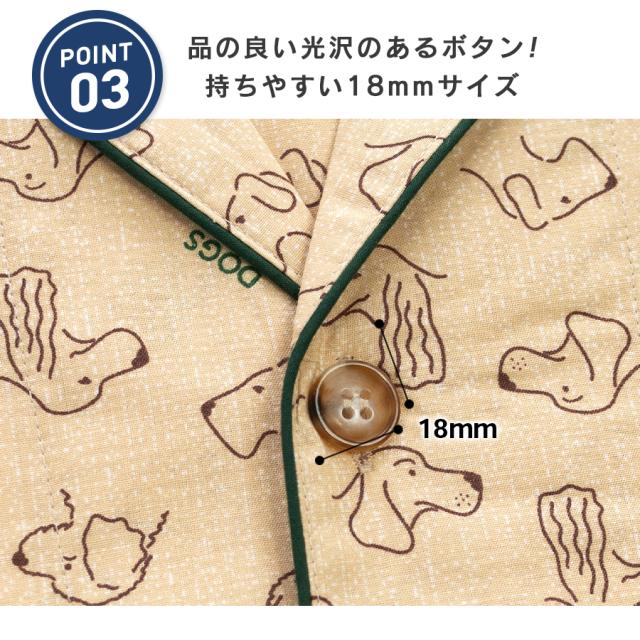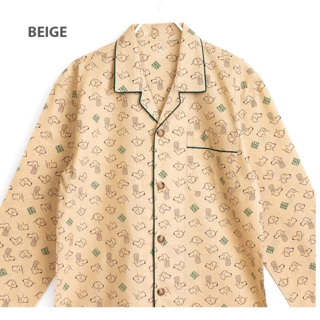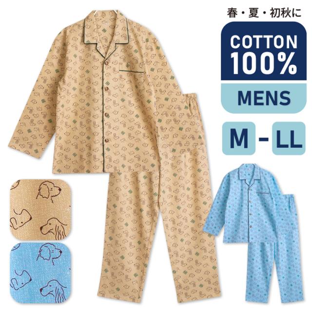 パジャマ メンズ 綿100% 長袖 春 夏 初秋 犬柄 前開き ボタン 薄手のシャツ サックス ベージュ M L LL 親子 おそろい リンクコーデ プレゼント ギフト 父の日 5211a