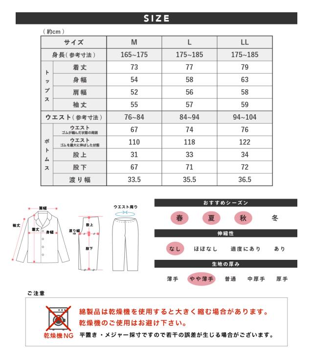 すっきりとした薄手の生地は軽く風通しもよく、 サラリとした肌触りが気持ちのいいパジャマです。