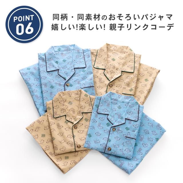 このパジャマはキッズサイズや大きいサイズも販売しており、おそろいリンクコーデが楽しめます。