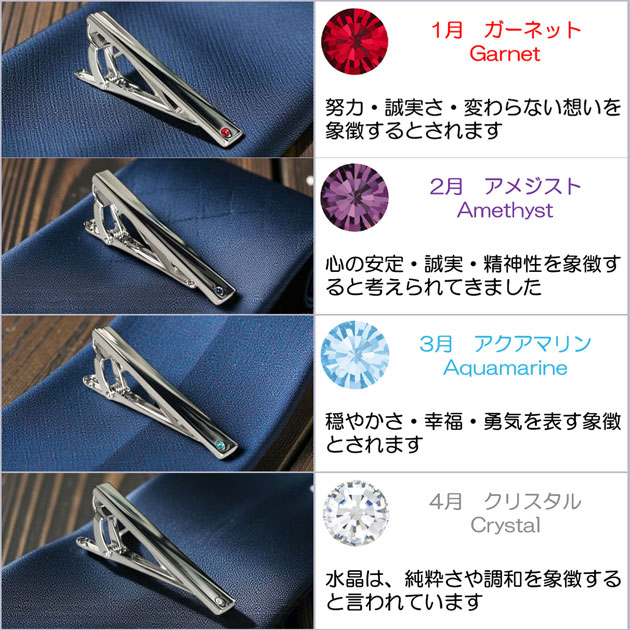選べる誕生石カラークリスタルガラス・ネクタイピン(タイバー)