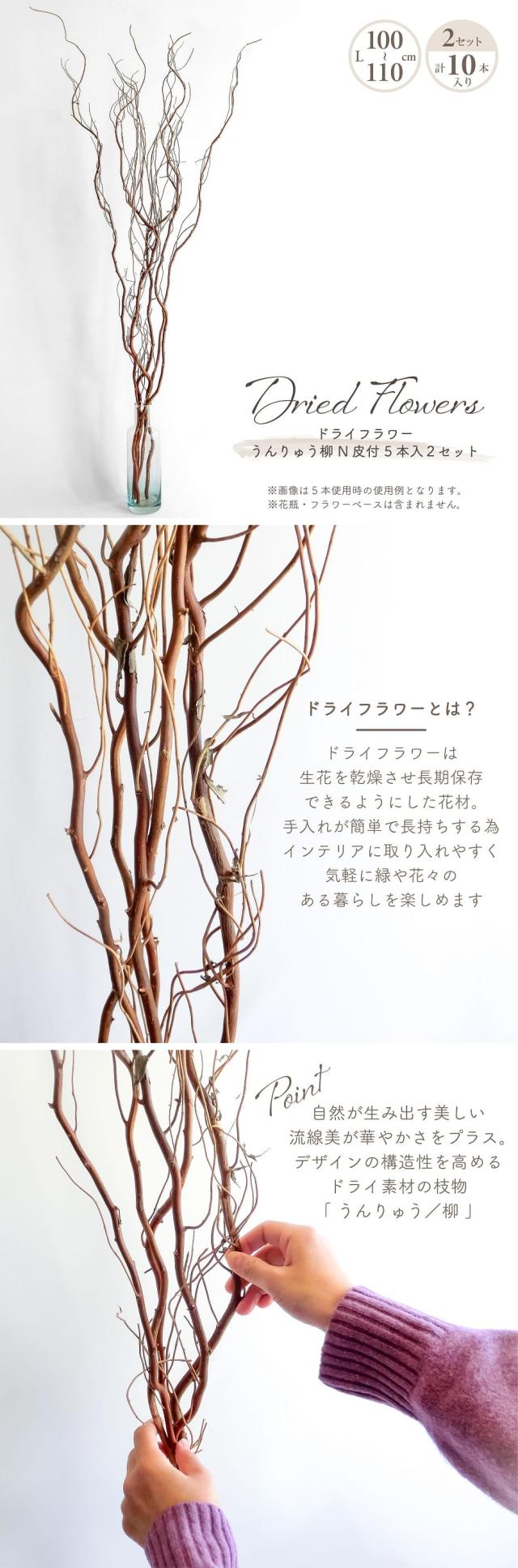 ドライフラワー 雲竜柳 うんりゅう柳 N皮付き 5本×2セット 計10本入り 無着色 枝物 枝もの ナチュラル 天然素材 自然素材 ドライ素材 インテリアグリーン 観葉植物 フラワーアレンジメント ディスプレイ お洒落 おしゃれ インテリア