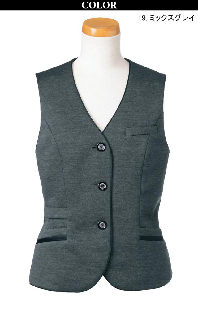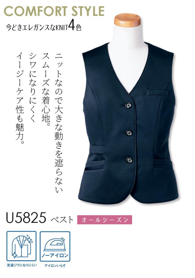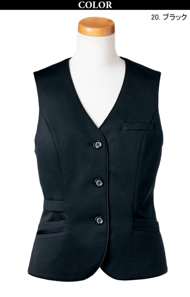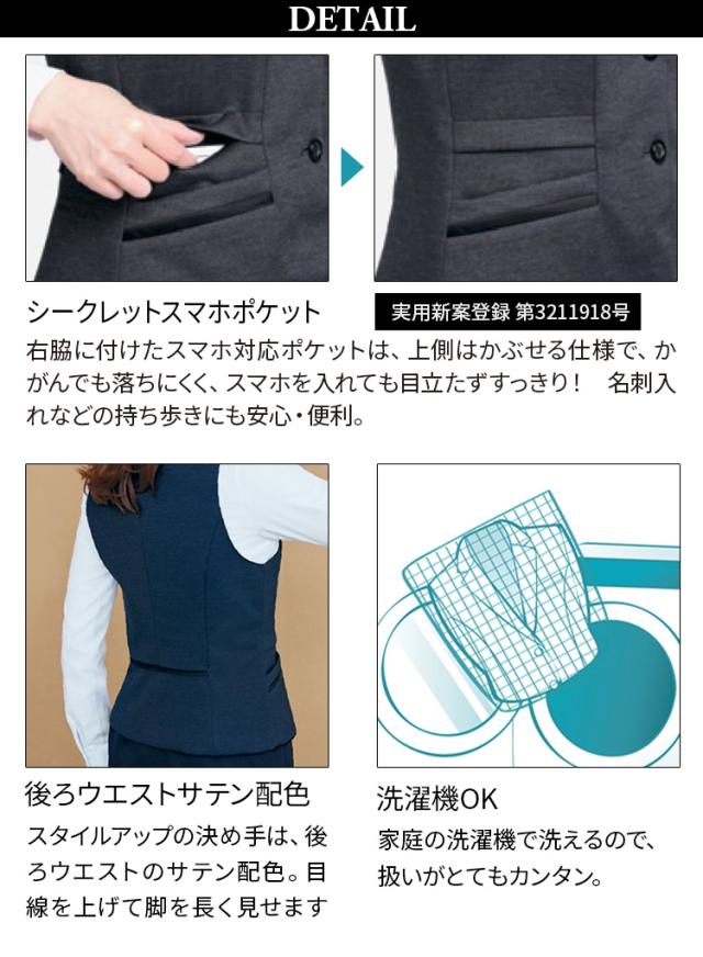 Unilady ベスト U5825 スマホポケット ニットストレッチ サテン配色 きちんと感 家庭洗濯 洗濯ジワになりにくい ノーアイロン オールシーズン オフィス 事務服 制服 営業 受付 接客 エレガント ヤギコーポレーション