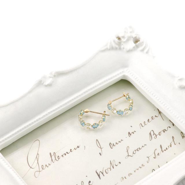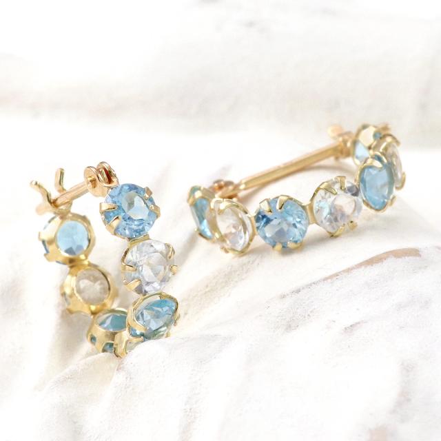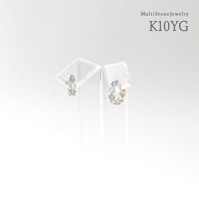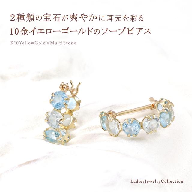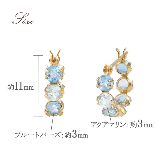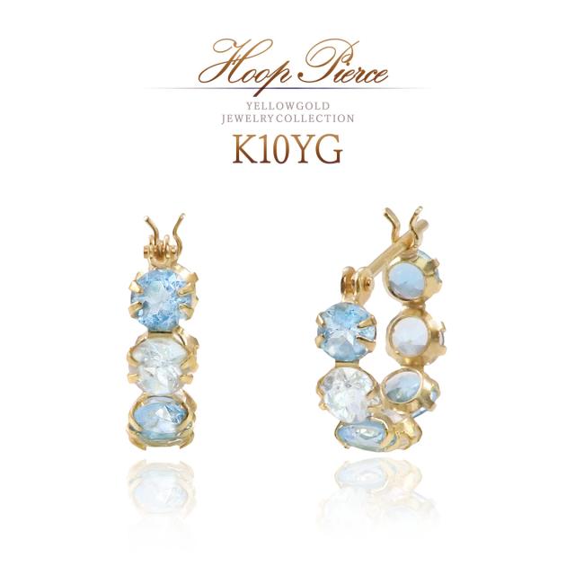 フープピアス 10K イエローゴールド 10金 K10 アクアマリン ブルートパーズ ピアス フープ レディース プレゼント 結婚記念日 誕生日 ギフト 贈り物 可愛い おしゃれ 天然石 宝石 天然 女性 彼女 妻 K10YG 本物 3月 11月 誕生石 ブルー トパーズ 水色 青 ホワイトデー お返し