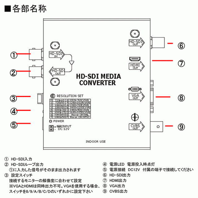 TVC-HDM04は、HD-SDI信号をHDMI・HD-SDI・VGA・CVBS映像へ変換するマルチフォーマットコンバーターです。