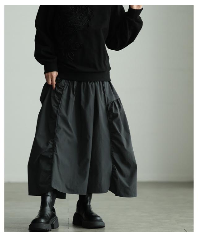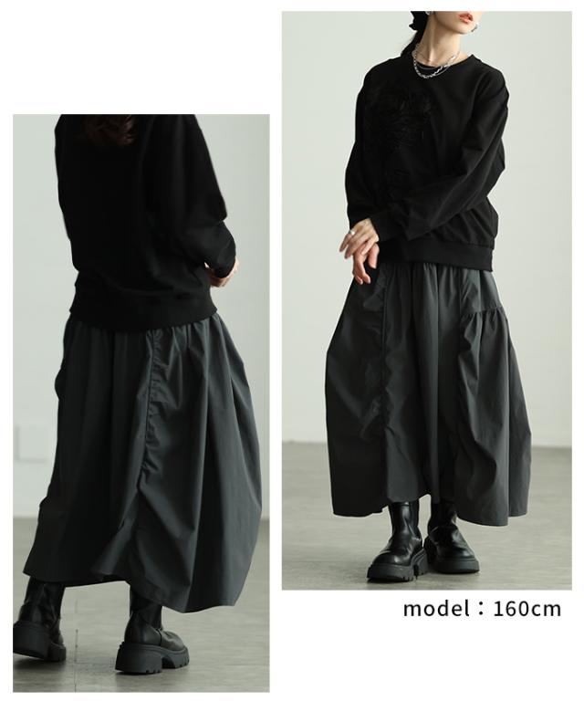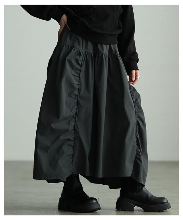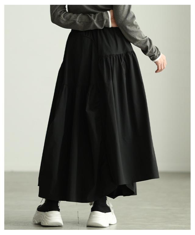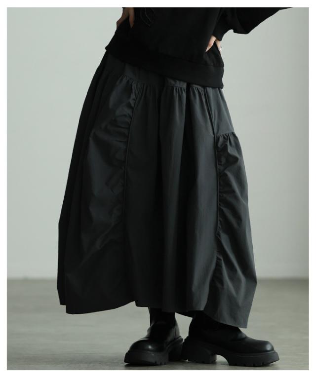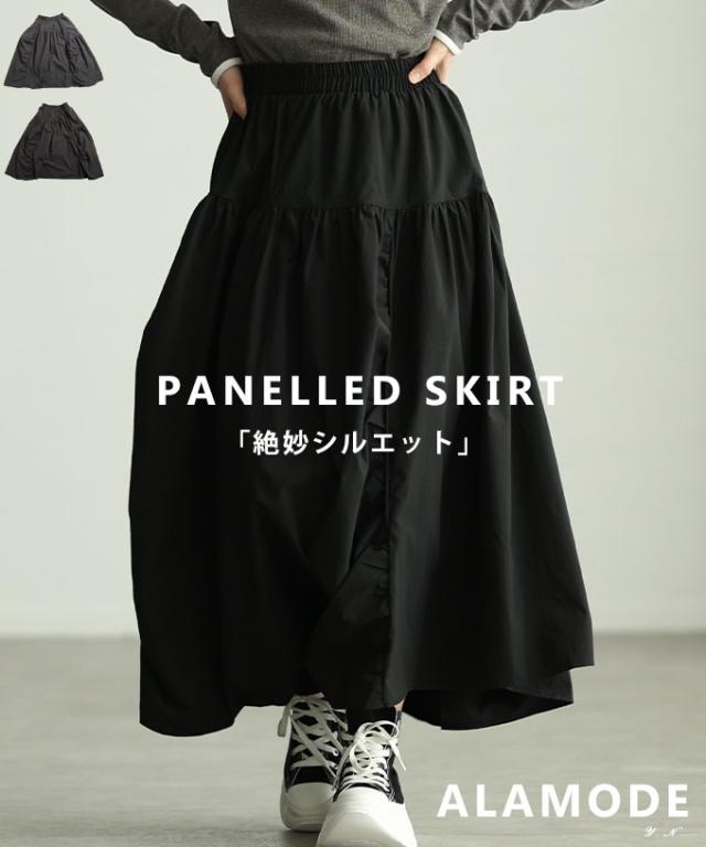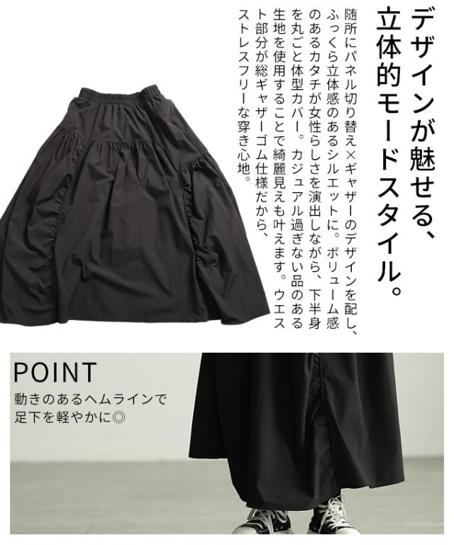 冬新作 シルエットで魅せるパネル切替変形ギャザースカート レディース ファッション スカート ギャザー 変形 切り替え ウエストゴム ロング ボリューム 個性 30代 40代 50代 60代 アラモード alamode otona 大人 cawaii 可愛い 洋服 かわいい服 mode-10151