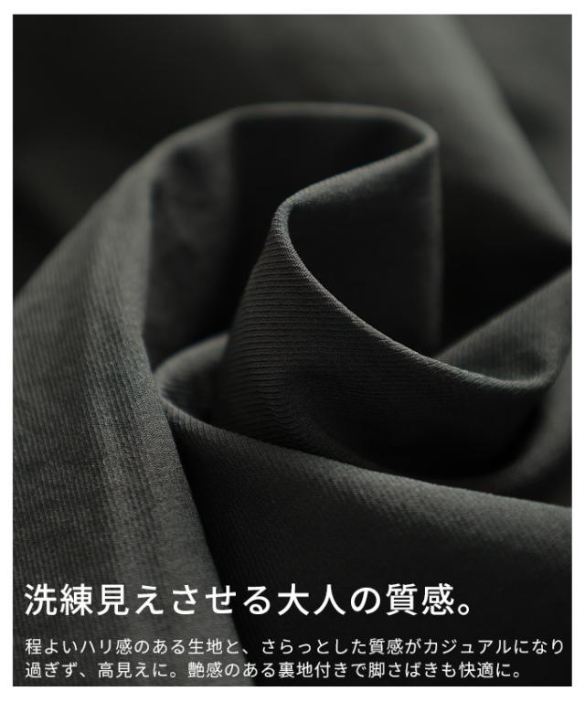 着丈はくるぶしが隠れるくらいです。ウエストは総ゴムですが少し余裕がありました。。所々にギャザーが入っていて、ふんわり広がるシルエットで体型を拾いません。裏地もあり少し張り感のある生地でトップス次第で長く着用できそうです。