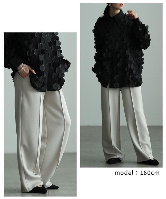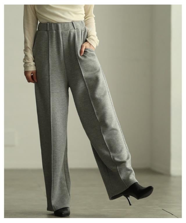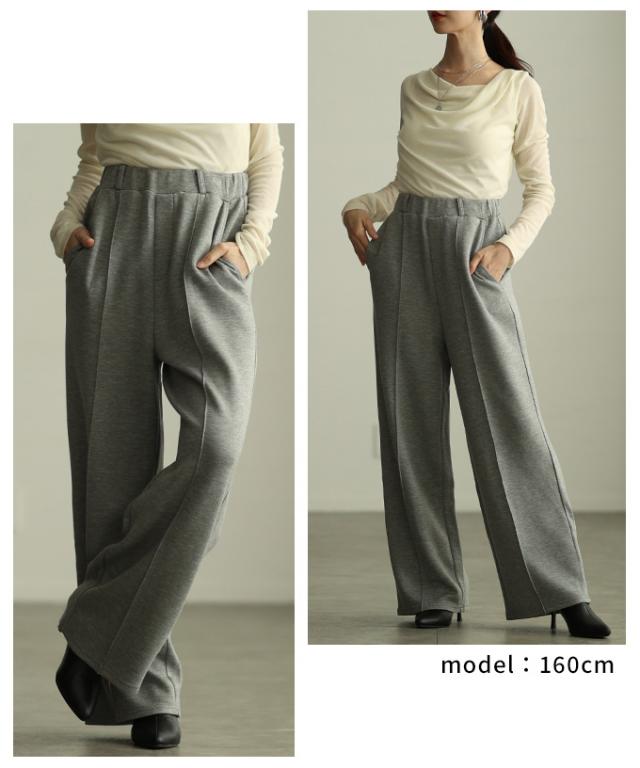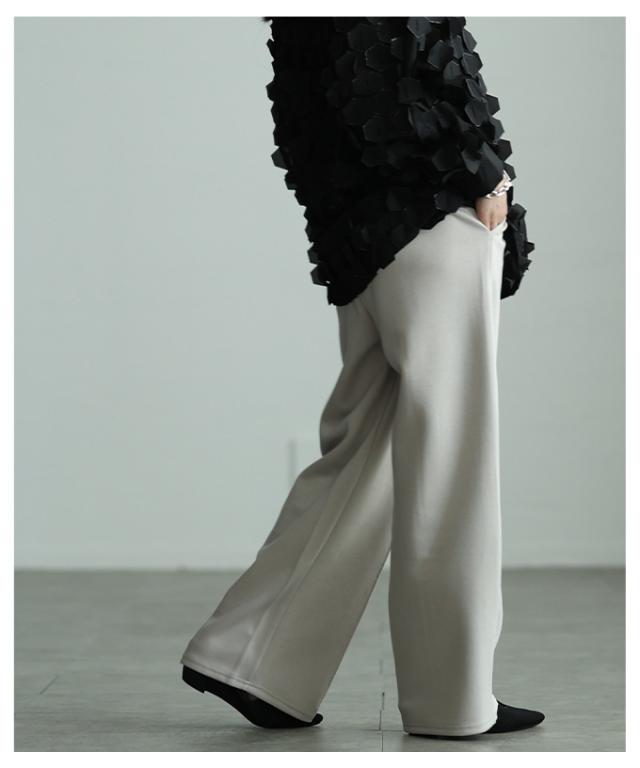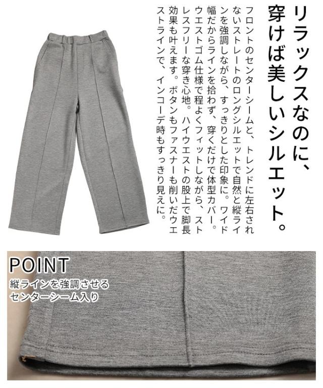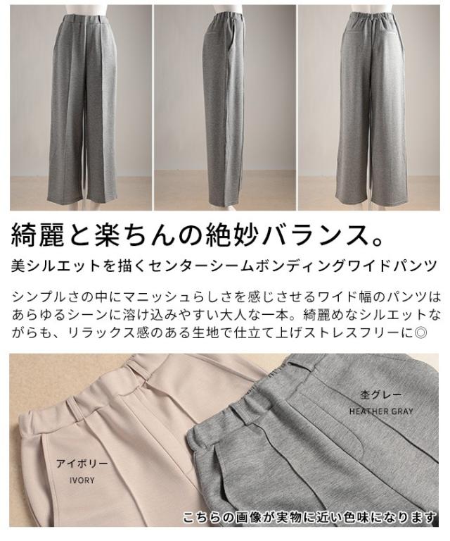 冬新作 美シルエットを描くセンターシームボンディングワイドパンツ レディース ファッション パンツ ワイド ロング ハイウエスト ウエストゴム スラックス シンプル 30代 40代 50代 60代 アラモード alamode otona 大人 cawaii 可愛い 洋服 かわいい服 aldt-173f2234