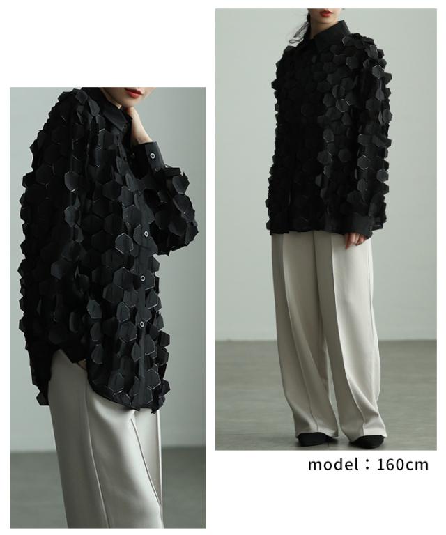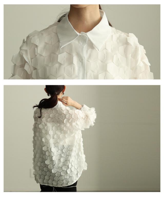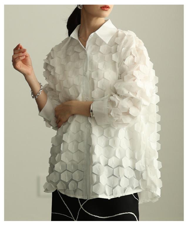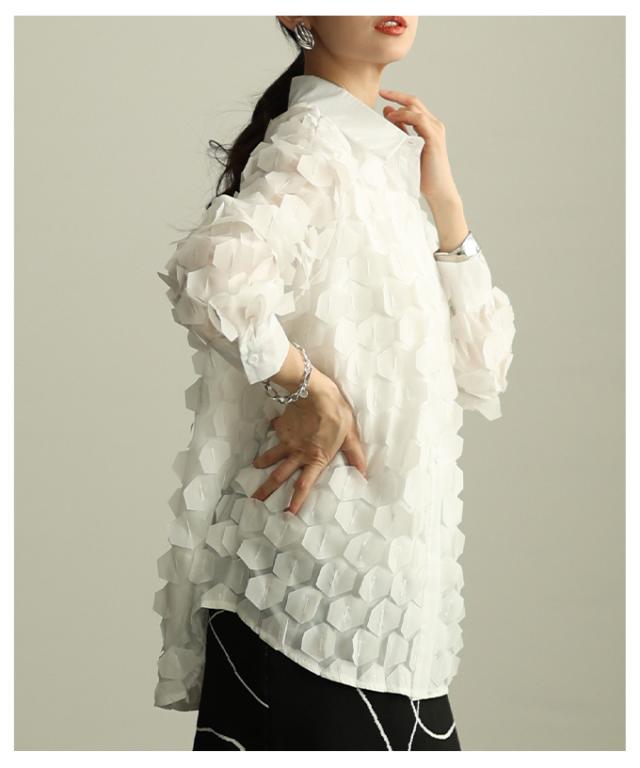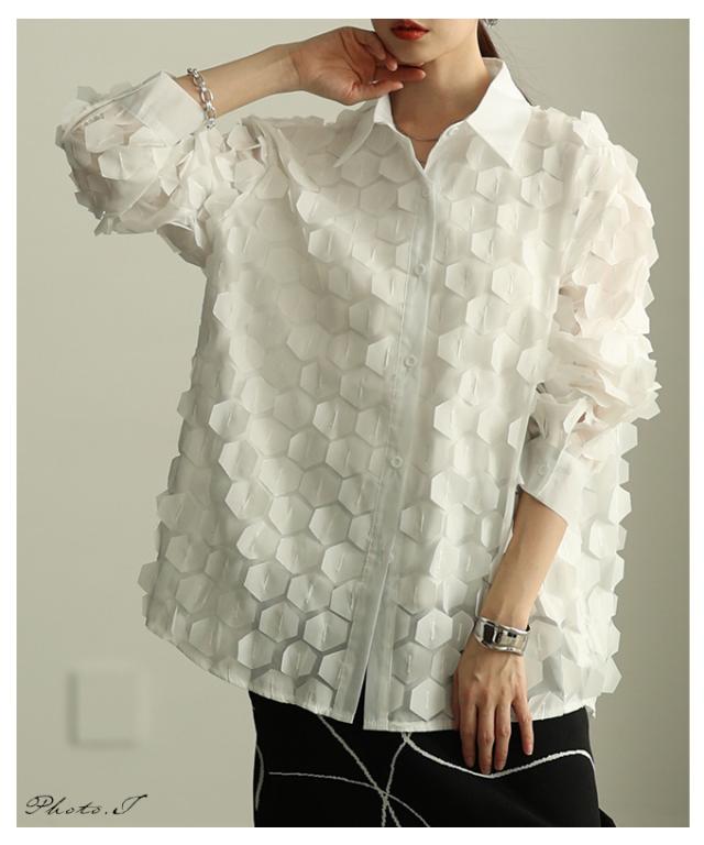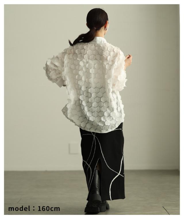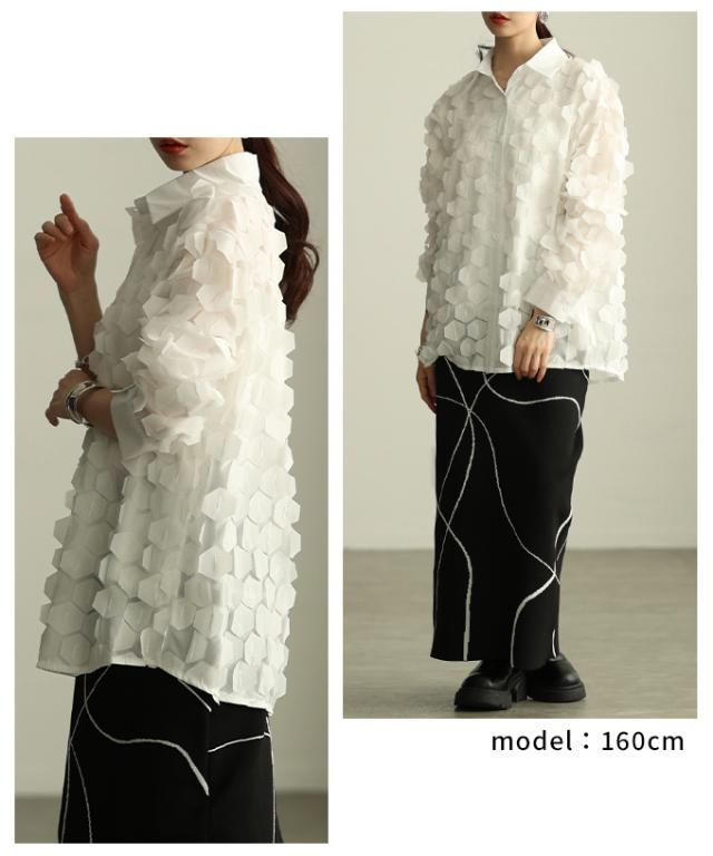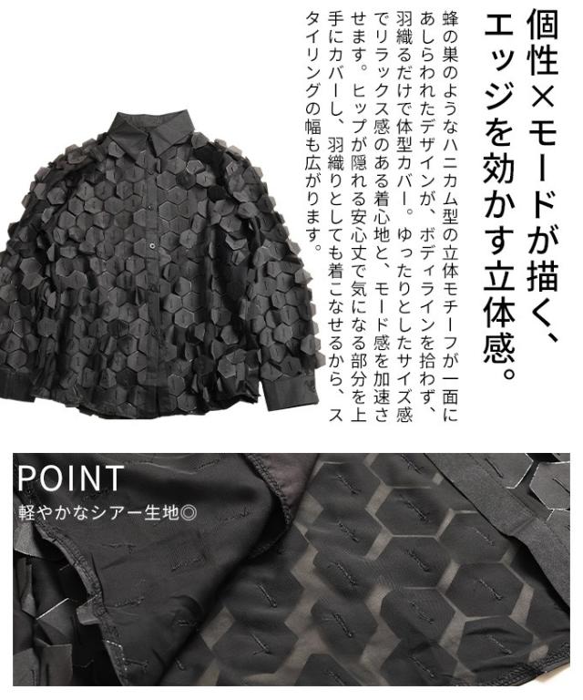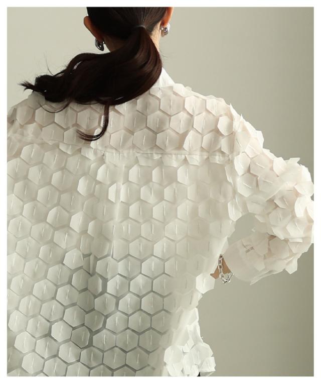 冬新作 ひらりと揺れる立体ハニカムシアーシャツ レディース ファッション トップス ブラウス シャツ 立体 ハニカム シアー 長袖 羽織り レイヤード 個性 モード 30代 40代 50代 60代 アラモード alamode otona 大人 cawaii 可愛い 洋服 かわいい服 mode-10149