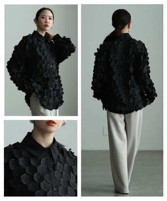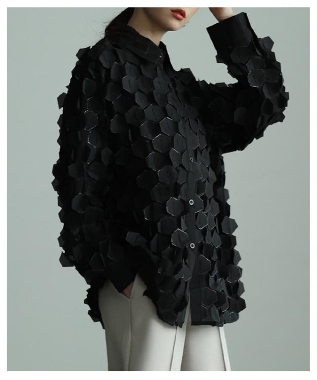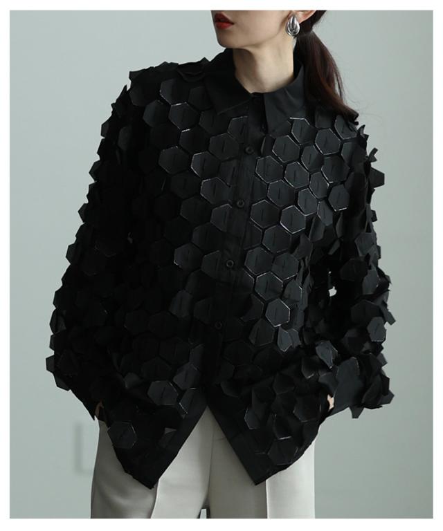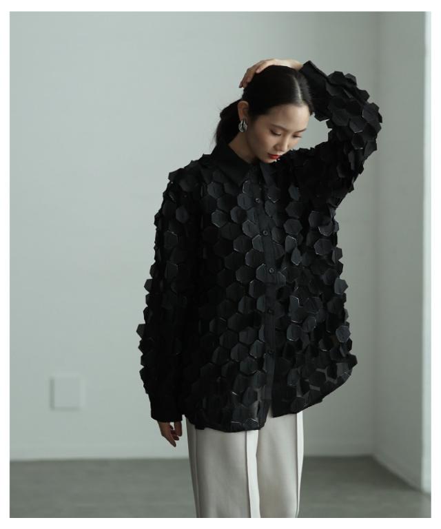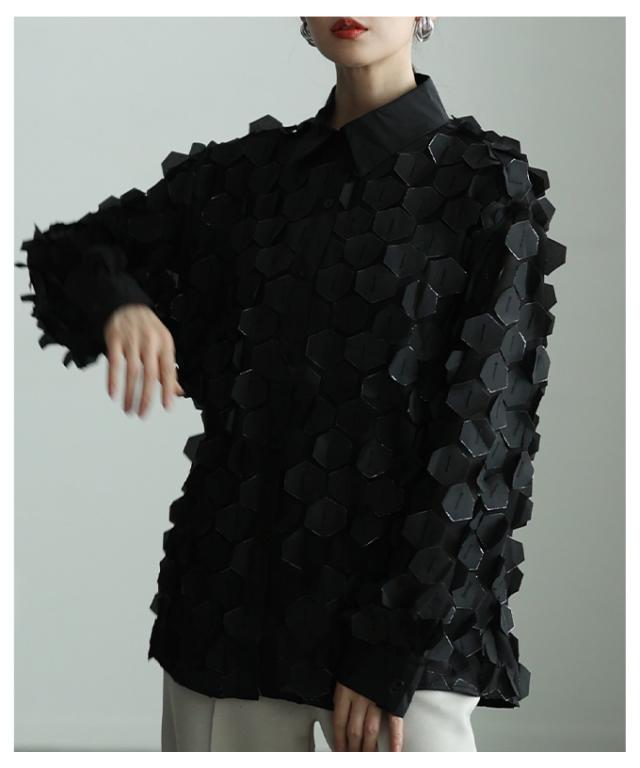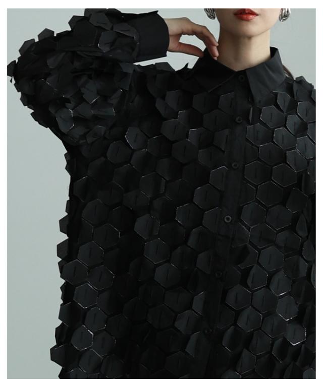 特徴: ハニカム 立体 シアー ラメ レギュラーカラー カフス ボタン
