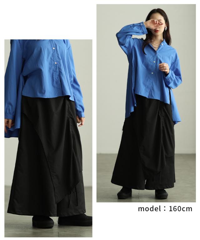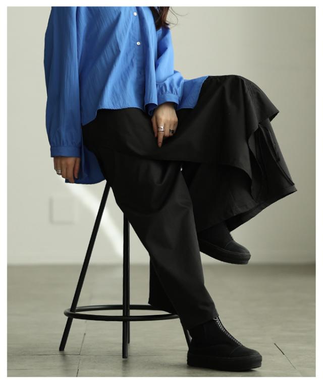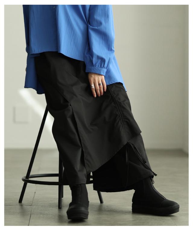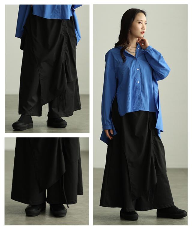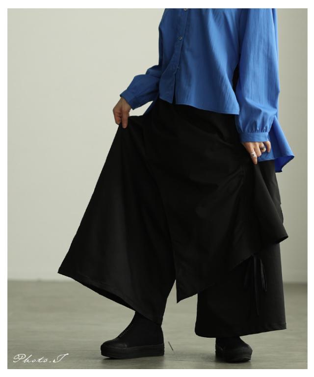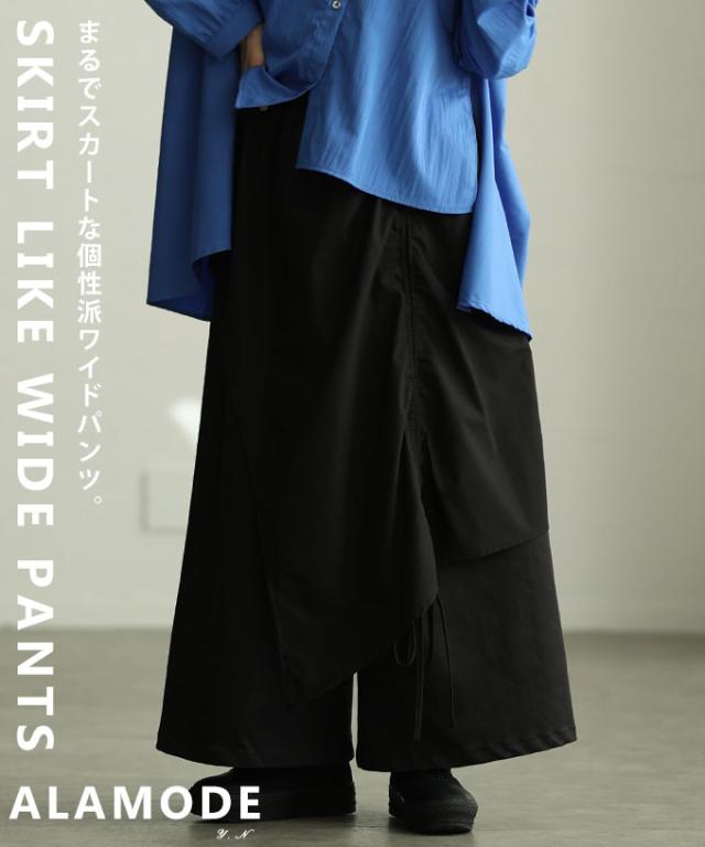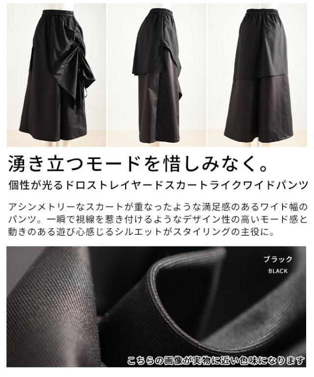 冬新作 個性が光るドロストレイヤードスカートライクワイドパンツ レディース ファッション パンツ ワイド ドロスト アシンメトリー レイヤード ロング 個性 モード 30代 40代 50代 60代 アラモード alamode otona 大人 cawaii 可愛い 洋服 かわいい服 mode-10146