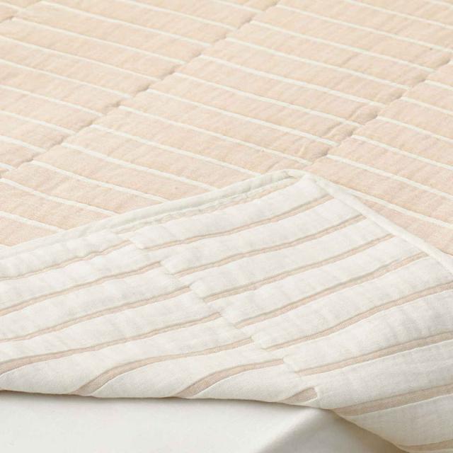 側生地には綿100%のガーゼ生地を使用し、ふんわりやさしい肌ざわりです。通気性・吸湿性に優れているため、汗ばむ季節でもさらっと快適にお使いいただけます。自然素材ならではの心地よさが、日々のリラックスタイムに寄り添います。