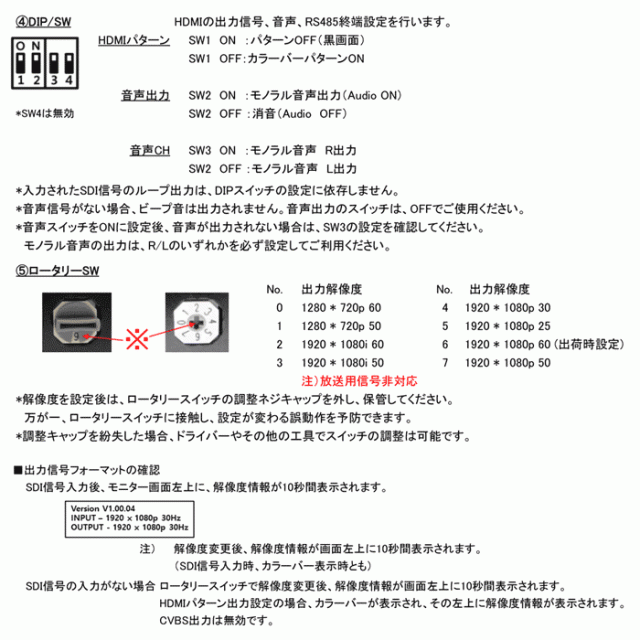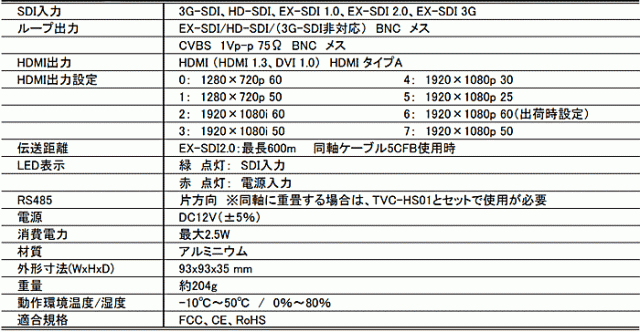 TVC-SH01(Rev.4)は、HD/EX-SDI信号をHDMIへ変換するコンバーターです。
