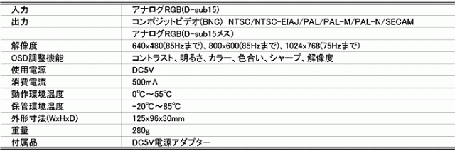 TVC-001Vは、VGAをビデオへ変換するコンバーターです。